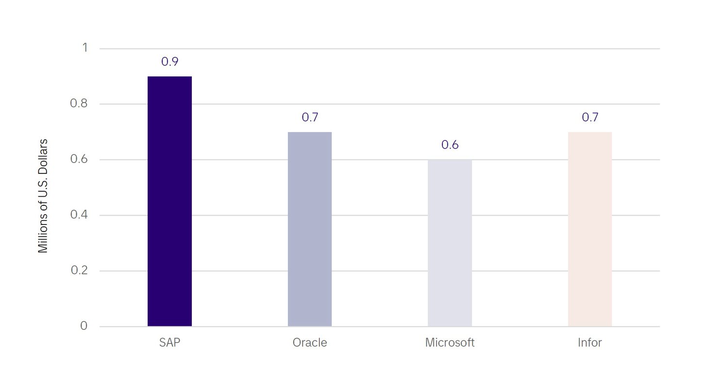 Panorama’s 2023 Clash of the Titans report, which compares the best ERP system solutions, gives the following figures for ERP implementation cost: