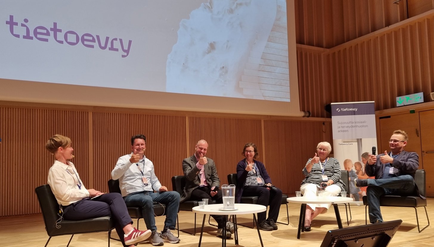 Keskustelijoina päivän polttavia teemoja pohtivat Ismo Nokso, Kymsote; Jarmo Haukilahti, EPSHP; Sanna Hämäläinen, Päijät-Sote; Sole Salmijärvi, Kelan Kanta-Palvelut sekä allekirjoittanut ja Hanna Hulkko, Tietoevry. Keskustelussa painotettiin uudistuksen olevan ensi sijassa sote-organisaatioiden toiminnallinen muutos, jota tietojärjestelmät tukevat. Arjen sujuvuuden varmistamista muutoksen melskeissä pidettiin tärkeänä.