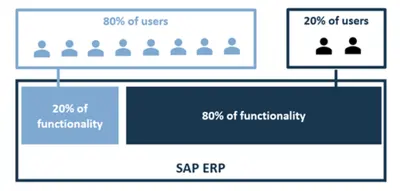 Attiecībā uz daudzām SAP ERP sistēmām ir spēkā 80:20 likums – 80 % lietotāju izmanto tikai 20 % funkciju, savukārt atlikušie 20 % izmanto vairumu (80 %) funkciju.