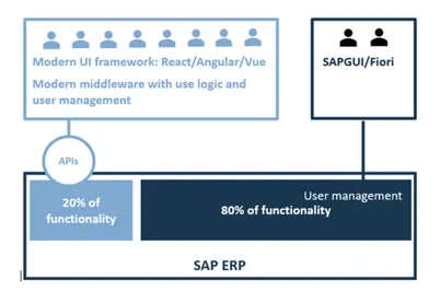 “Headless” arhitektūra un mūsdienīgas UI, kas izstrādātas jūsu SAP ERP, ļauj jums koncentrēties uz jauno S/4HANA funkcionalitāti un iespējām un uzlabo jūsu darbības procesus. Tā kā vairumam jūsu lietotāju lietošana būs relatīvi vienkārša, jūsu S/4HANA projektā visam vajadzētu norisināties bez problēmām. Būtībā daži ABAP programmētāji vienkārši migrē jūsu API no ERP uz S/4HANA.