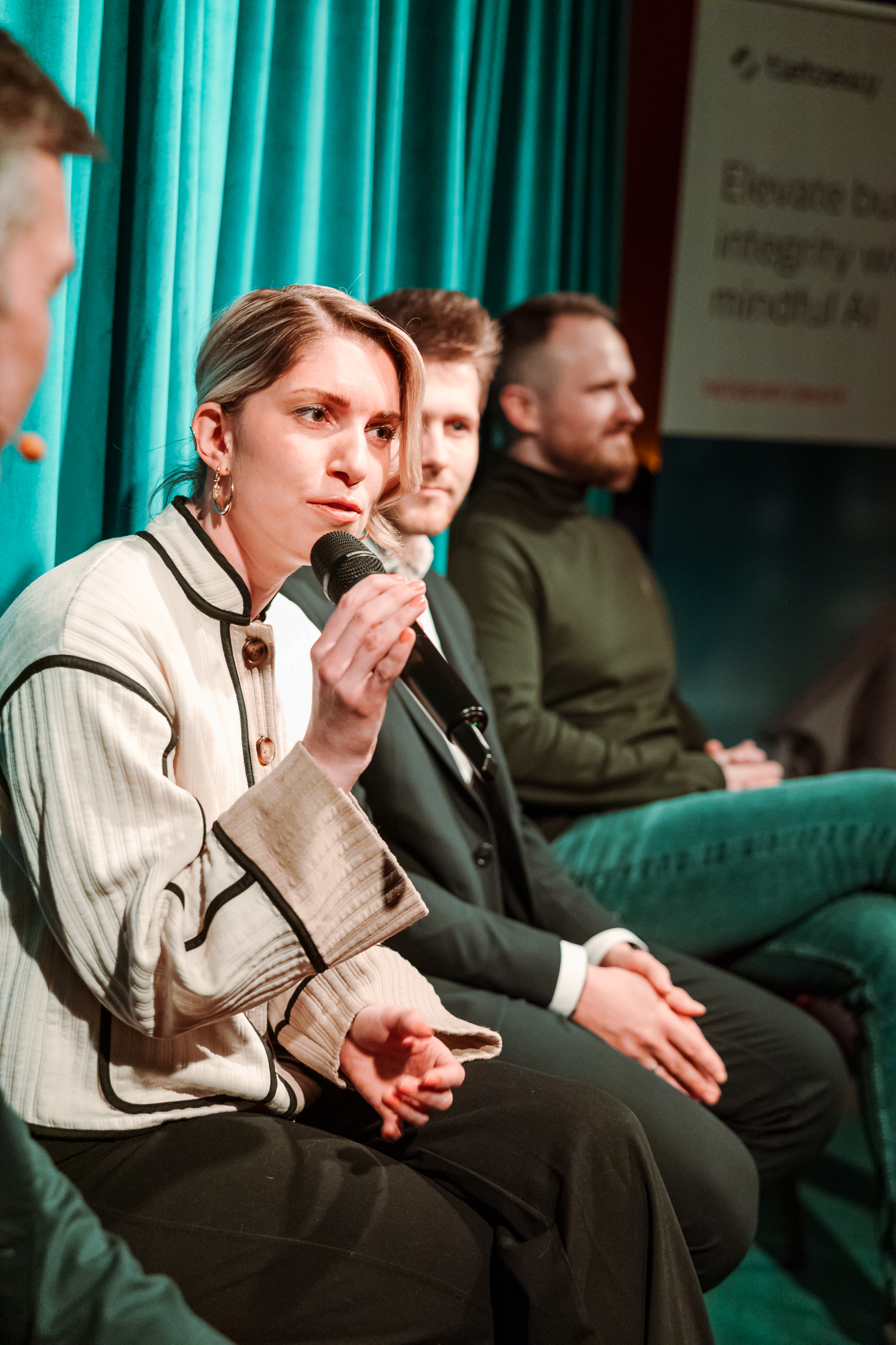 Im Mittelpunkt stand eine inspirierende Diskussionsrunde, die wertvolle Einblicke in die Praxis bot. Dabei wurde gezeigt, wie der Einsatz von KI-Anwendungen die Zukunft in Unternehmen nachhaltig positiv beeinflussen, die Effizienz mit Prozessoptimierungen durch KI steigern und damit die Rentabilität erhöhen kann.