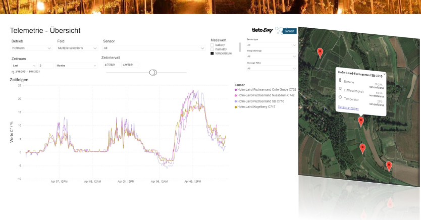 Bei dieser Herausforderung setzt der Digitalisierungsdienstleister TietoEVRY, gemeinsam mit der hierfür gegründeten ARGE FrostStrat, an. Dieses EIP AGRI Projekt (Agricultural European Innovation Partnership) FrostStrat, abgewickelt über BMLRT (Bundesministerium Landwirtschaft, Regionen und Tourismus) besteht aus sechs landwirtschaftlichen Betrieben aus Wein- und Obstbau, den Landwirtschaftskammern Österreich, Burgenland, Niederösterreich und Steiermark, sowie der österreichischen Hagelversicherung VVaG und Microtronics. In Zusammenarbeit werden eingesetzte Frostbekämpfungsverfahren auf ihre Wirksamkeit geprüft und eine digitale Entscheidungshilfe für Wein- und Obstbäuer*innen erarbeitet, welche auf Basis von Temperaturmessungen kleinräumige Prognosen über drohende Frostereignisse ausgeben. Die Wichtigkeit dieses Unterfangens und die Anwendbarkeit für die Landwirtschaft bestätigt auch Christoph Nastl, Betriebsleiter des Bereichs Weingarten beim Weingut Bründlmayer: „Ziel eines jeden Weinbaubetriebes ist es, möglichst früh, also in Echtzeit, Daten für eine bevorstehende Frostnacht zu bekommen, um den Spätfrostschaden zu reduzieren oder im besten Fall völlig abzuwenden.“