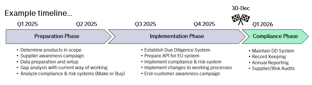 The European Union Deforestation Regulation (EUDR) requires production sites to ensure their products do not contribute to deforestation, with a compliance deadline of December 2025.