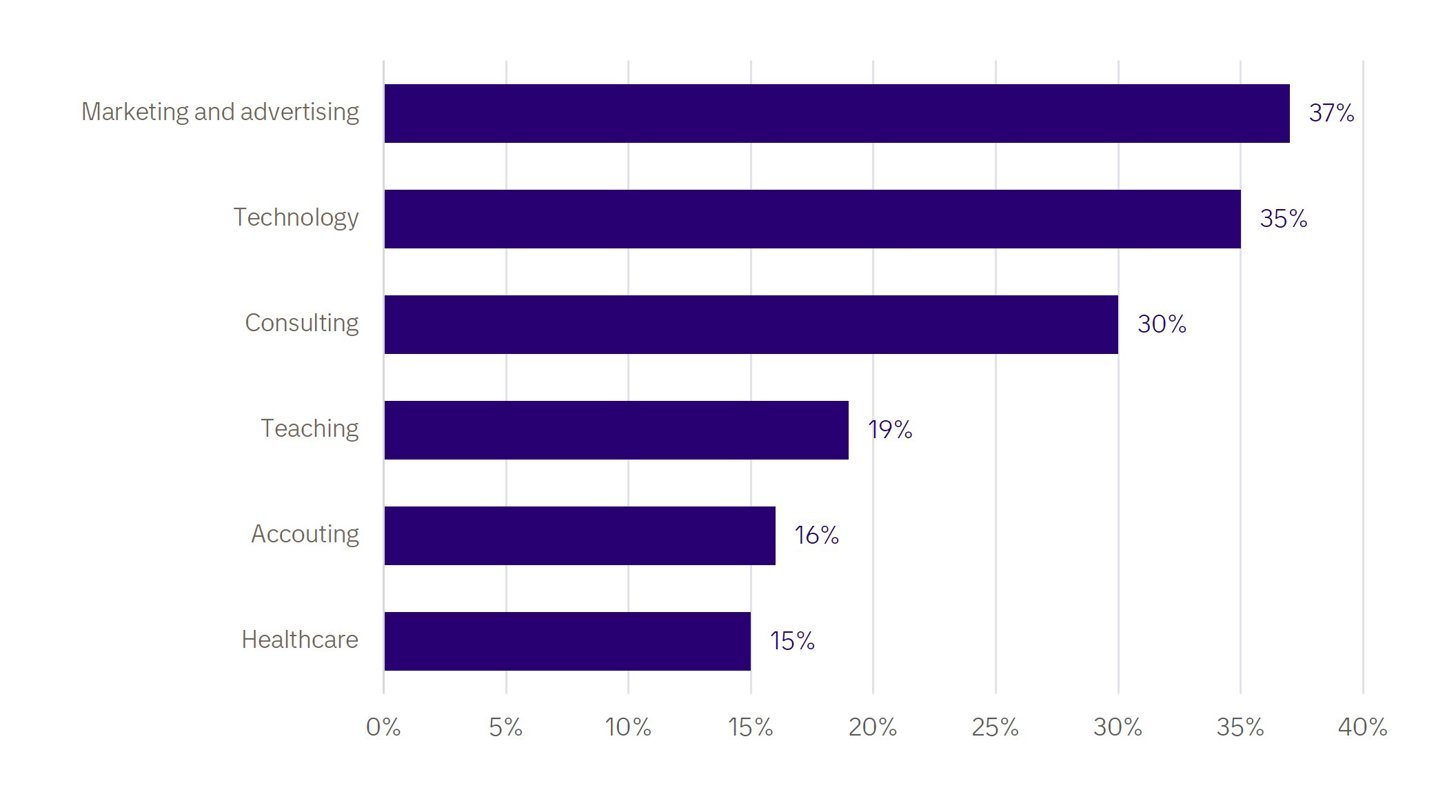 Generative AI adoption rates in the United States workplace by industry in 2023