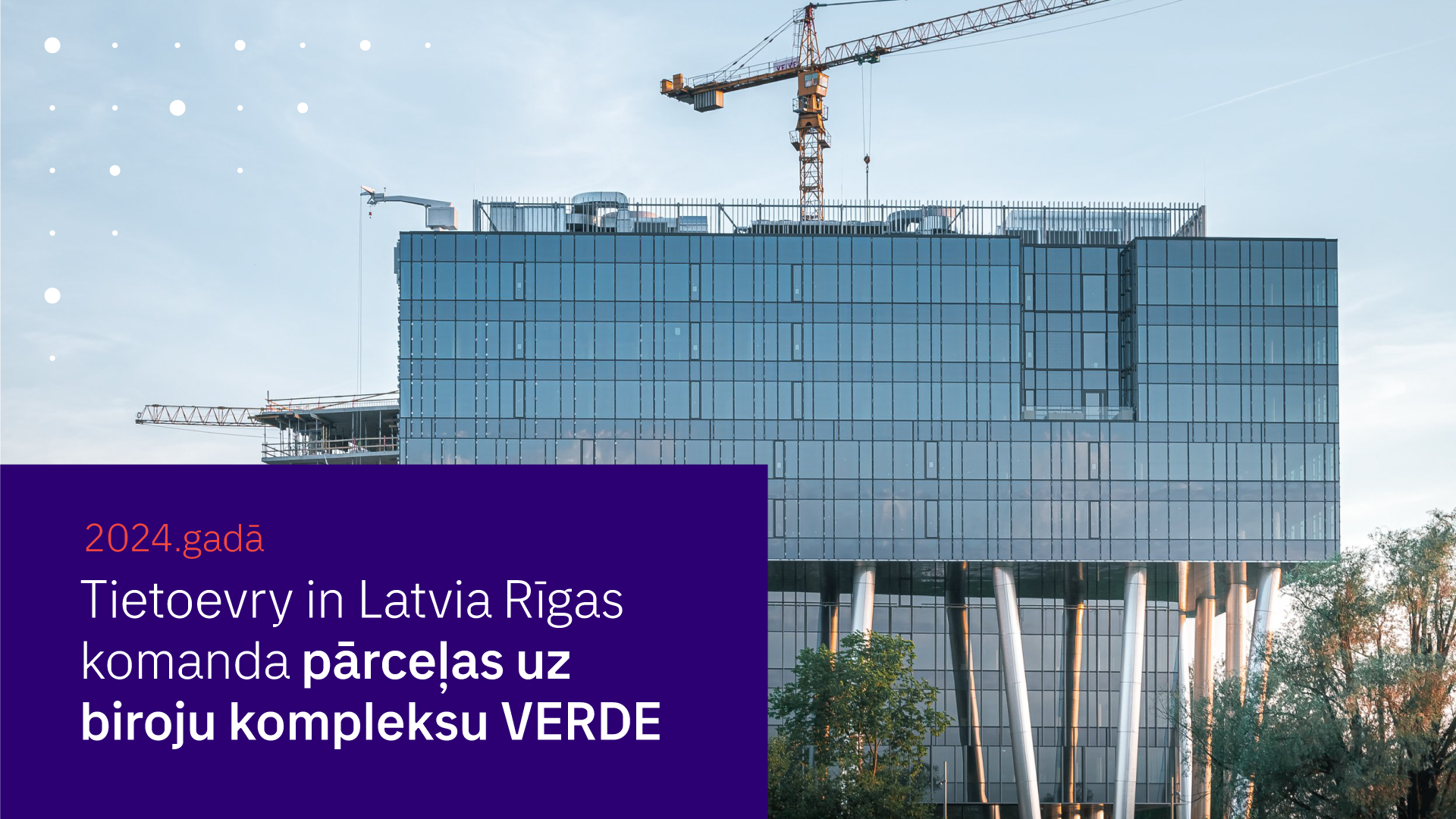 Esam priecīgi ziņot, ka jau 2024. gadā mūsu – Tietoevry in Latvia Rīgas komanda pārceļas uz jaunu biroju. Mūsdienīgā darba vide atradīsies Rīgas zaļākajā biroju kompleksa "Verde" B ēkā.