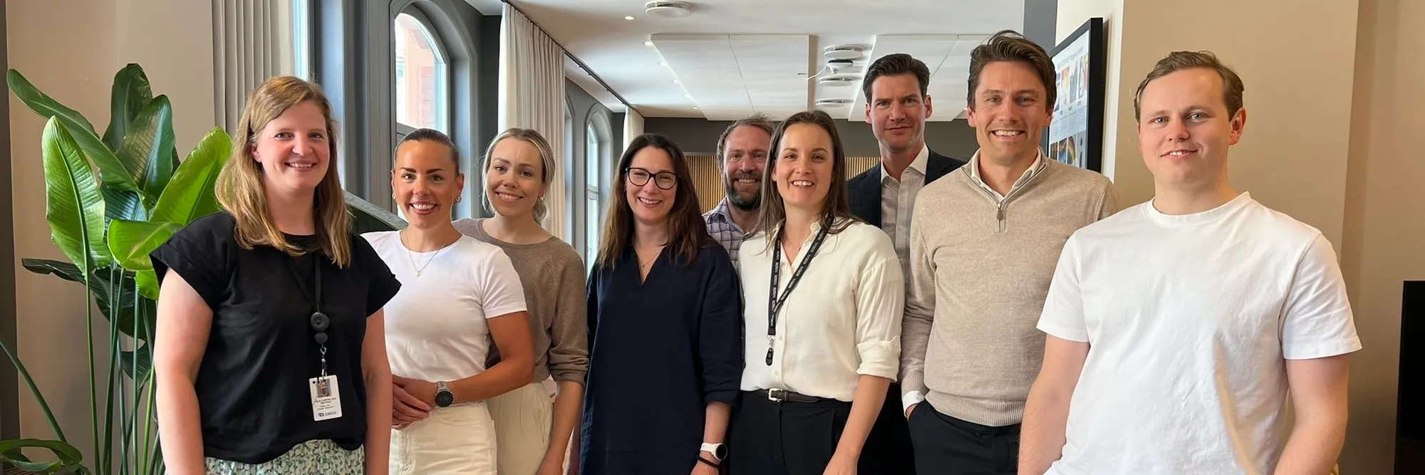 Teamet fra OBOS-banken og Tietoevry Banking som har jobbet frem den nye løsningen. F. v.: Kaja Tjønneland Wefring, Kathinka Fodstad, Elin Maria Haugland Winther, Jeanette Skogrand, Magnus Istre, Eleni Figenschou, Tom-Erik Strand-Udnæseth, Jørgen Braaten og Herman Bruu Røine.