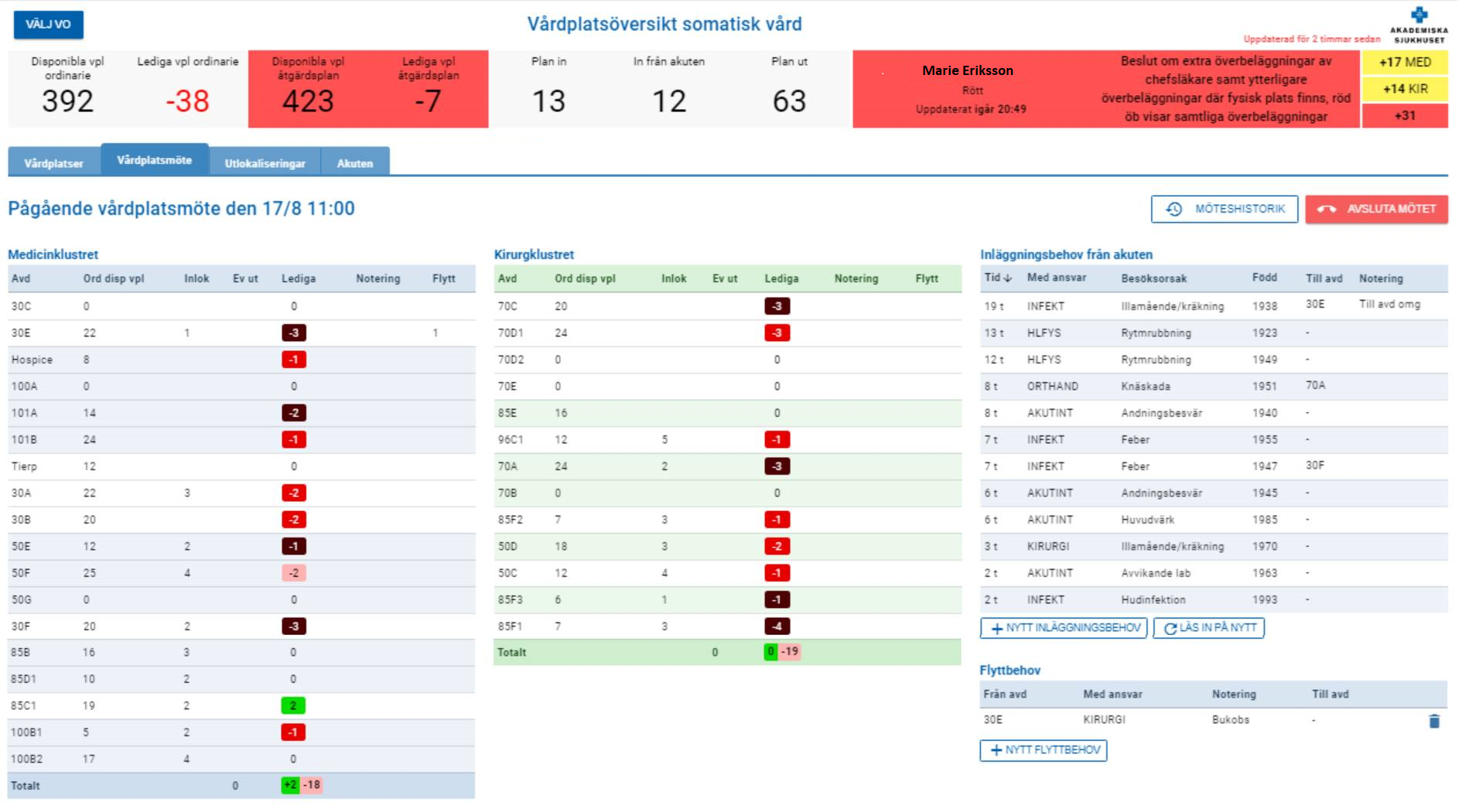 Vårdplatssituationen på ett universitetssjukhus är alltid ansträngd och Akademiska sjukhuset är inget undantag. Sjukhuset har ca 850 fastställda vårdplatser, dagligen skrivs 127 patienter in, 110 opereras och ca 350 patienter får akutvård. 2018 upplevde man en situation med vårdplatsbrist och återkommande överbeläggningar och utlokaliseringar, en resurskrävande, manuell och administrativt tung vårdplatskoordinering och att det var svårt att få en sann bild av aktuellt vårdplatsläge. Sammantaget kunde detta medföra risk för ohälsa hos personalen och i värsta fall bristande patientsäkerhet. Det fanns ett tydligt behov att hitta sätt att utnyttja kapaciteten så effektivt som möjligt och förbättra situationen för både personal och patienter.